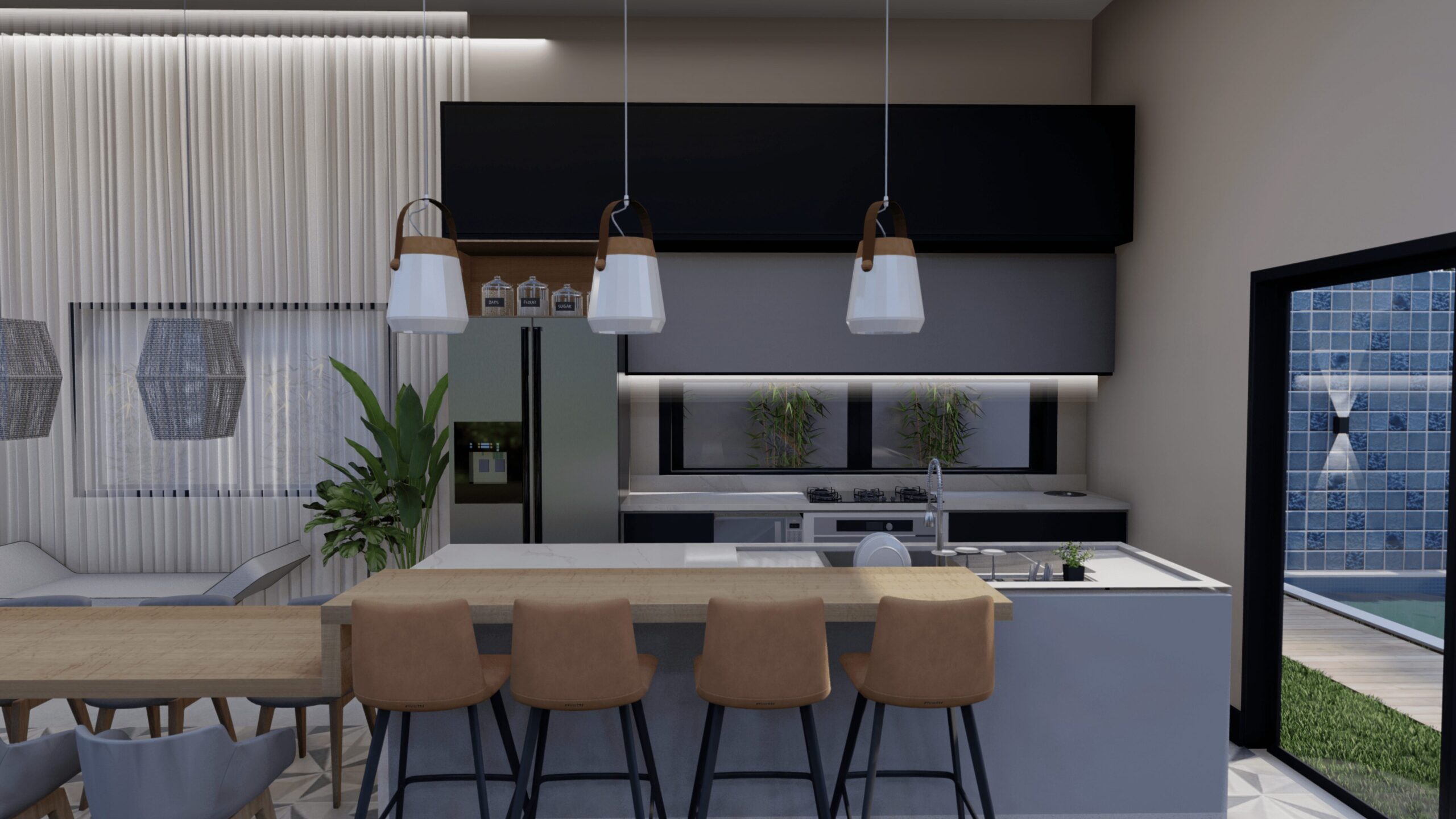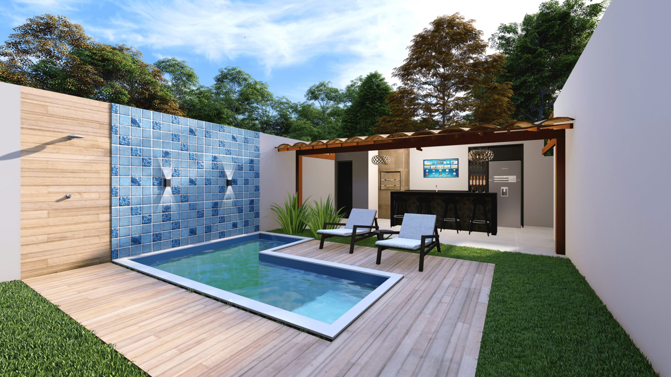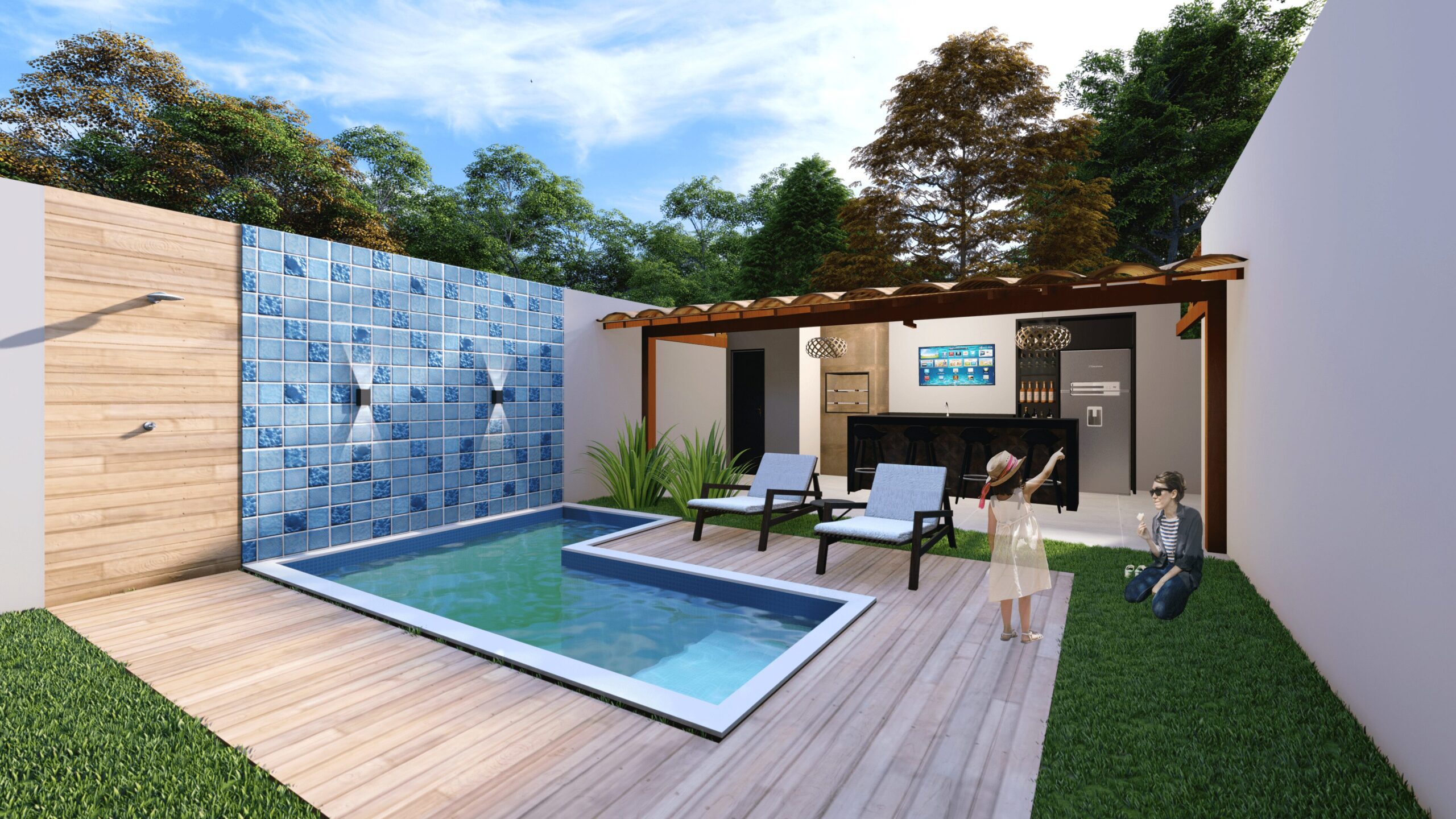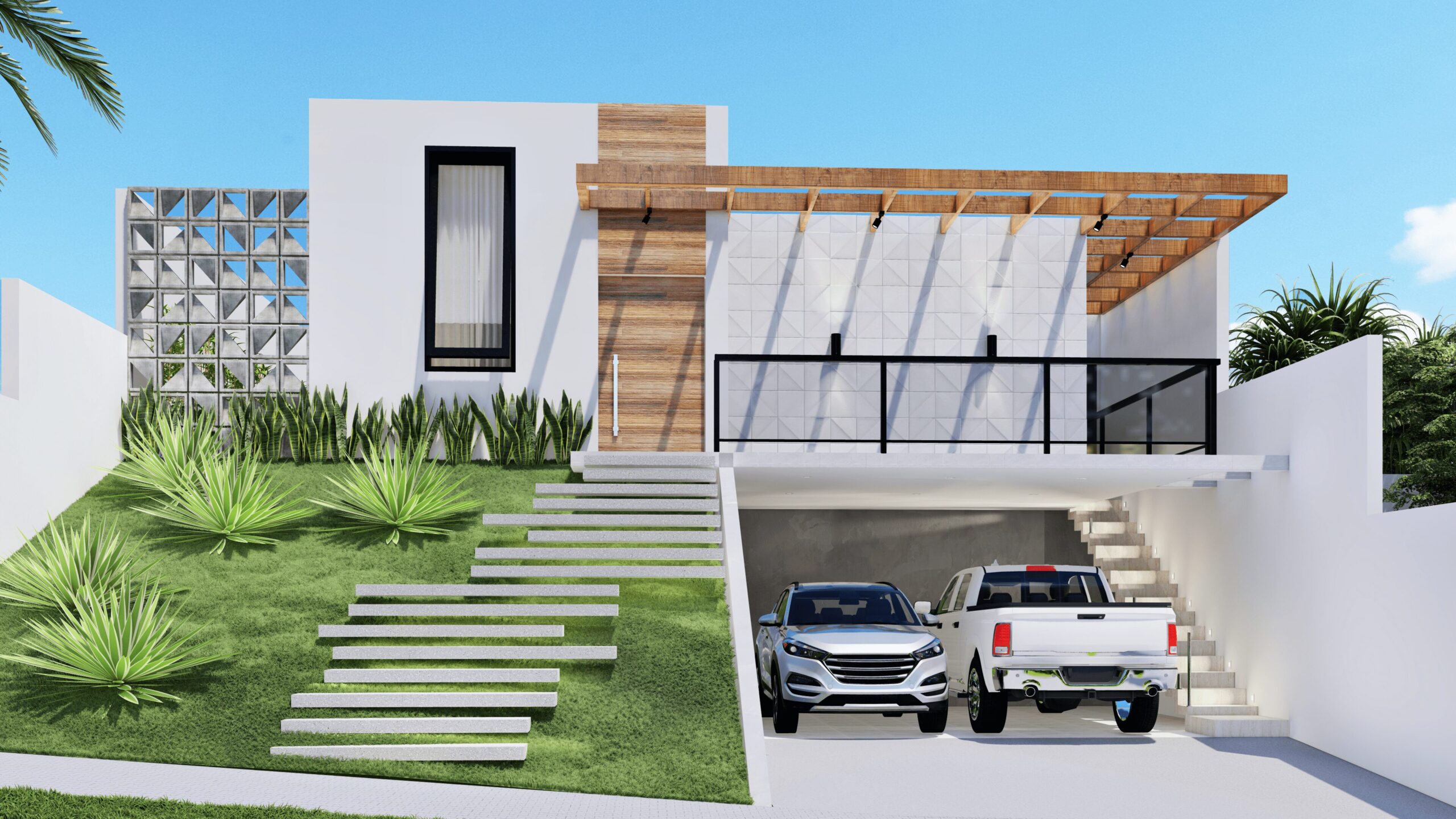 CASA EM TERRENO ACLIVE, POR ISSO OPTAMOS POR ALOCAR GARAGEM EMBAIXO E UMA CASA ‘TERREA’ EM CIMA, APROVEITANDO MELHOR O TERRENO. A CASA CONTÉM GARAGEM PARA DOIS CARROS, SALA E COZINHA INTEGRADAS, AREA DE LAZER EXTERNA COM PISCINA,DOIS QUARTOS, BANHEIRO SOCIAL E UMA SUÍTE COM CLOSET.